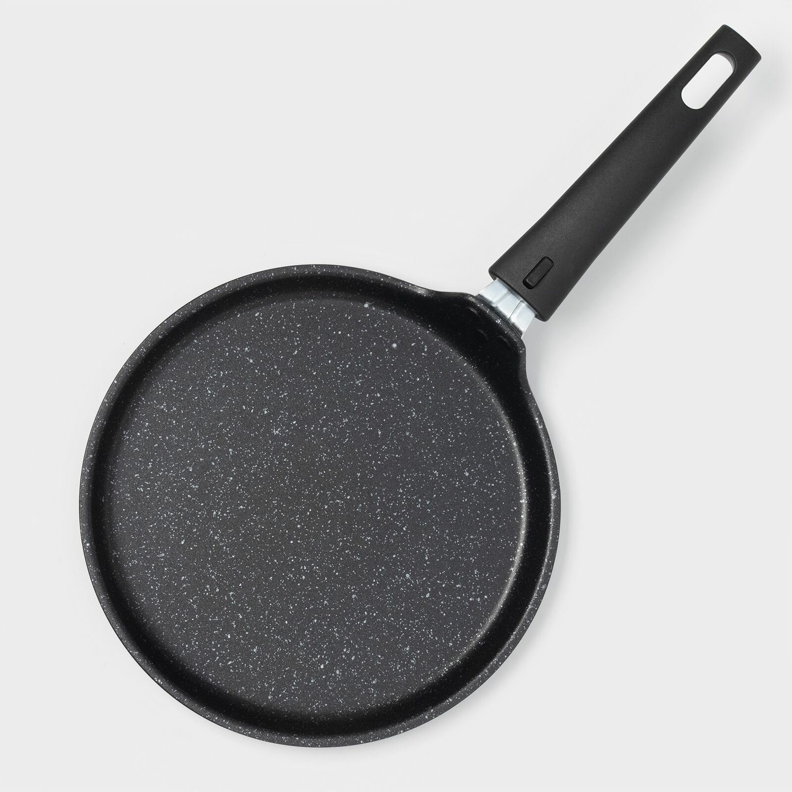 Купить Сковорода блинная, d 22 см, пластиковая ручка, антипригарное покрытие, цвет тёмный мрамор с доставкой по всей России.
