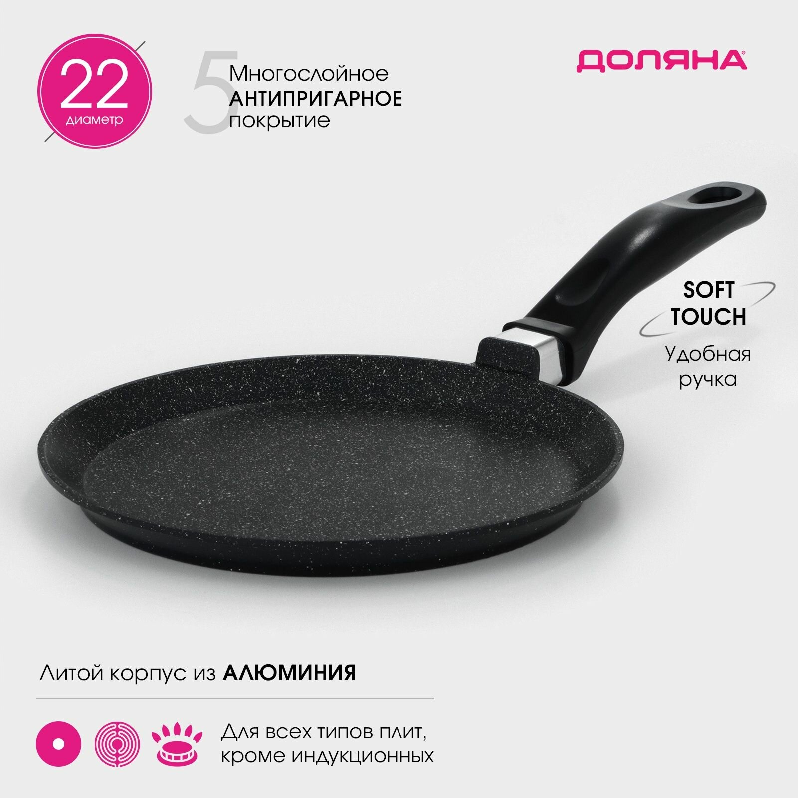 Купить Сковорода блинная Доляна Элит , d 22 см, антипригарное покрытие, алюминий, чёрная с доставкой по всей России.