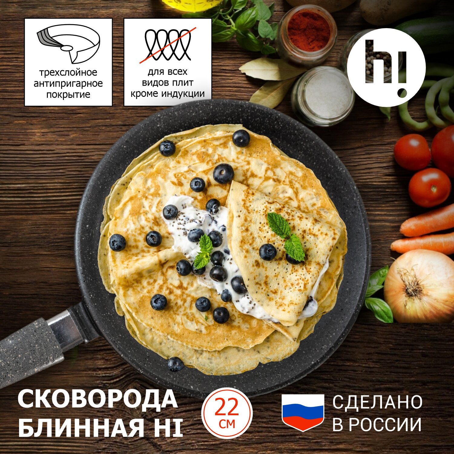 Купить Сковорода блинная Hi MVKKLGR53122 22 см с доставкой по всей России. Сковорода блинная Hi MVKKLGR53122 22 см: сравнение цен, характеристики, фото, актуальное наличие и цены.