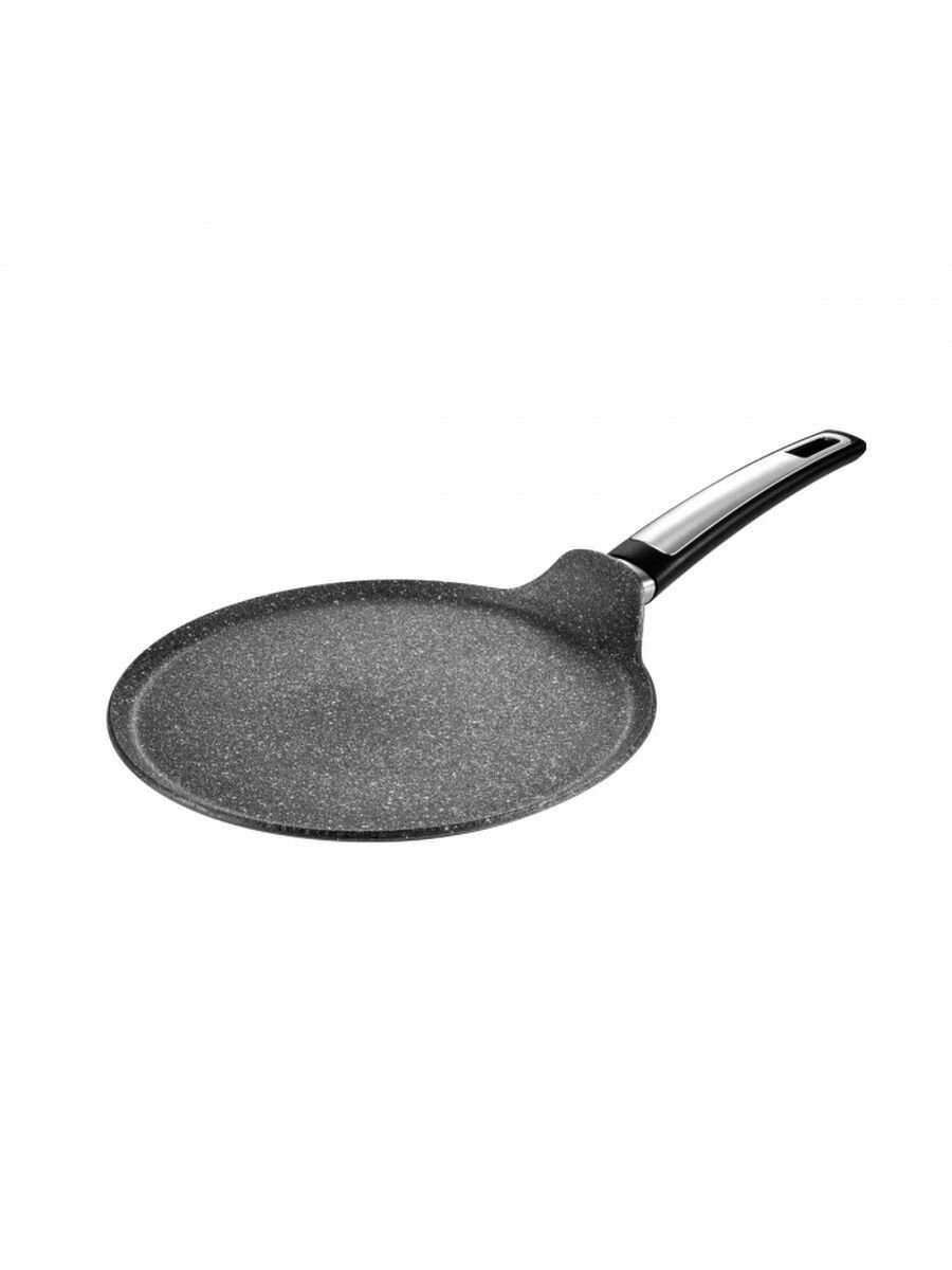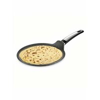 - Массивная сковорода с низкими стенками и уникальным рифленым антипригарным покрытием - Благодаря специальной структуре поверхности сковороды со свойствами не полированного природного камня блинчики не пригорают и пропекаются равномерно - Подходит для всех типов плит: газовых, электрических, стеклокерамических и индукционных - Можно мыть в посудомоечной машине