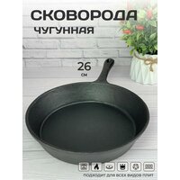 Сковорода чугунная 26 см с литой ручкой для всех видов плит, включая индукционную