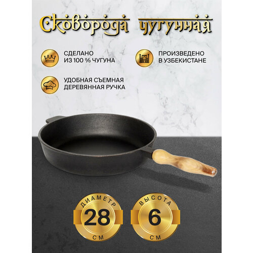 Купить Сковорода чугунная 28 см, высота 6 см, со съемной ручкой с доставкой по всей России. Сковорода чугунная 28 см, высота 6 см, со съемной ручкой: сравнение цен, характеристики, фото, актуальное наличие и цены.