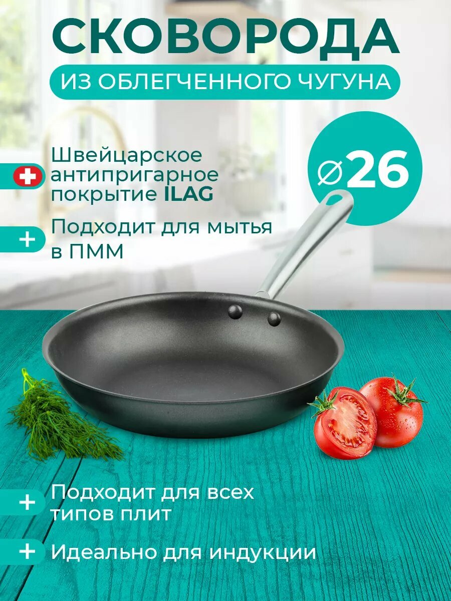Сковорода чугунная антипригарная Ilag 26см: сравнение цен, характеристики, фото, актуальное наличие и цены.