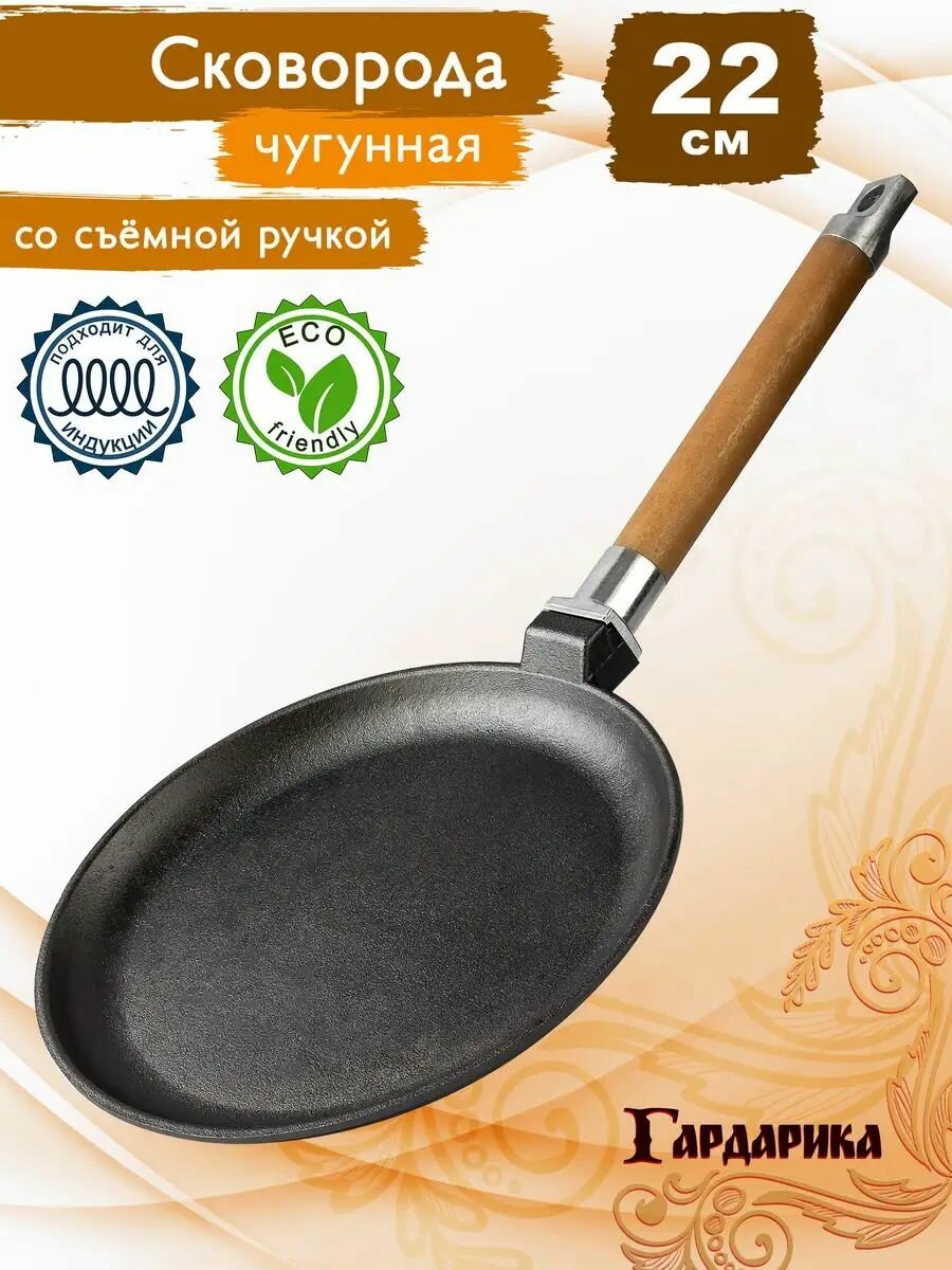 Купить Сковорода чугунная Гардарика 22 см блинная со съемной ручкой с доставкой по всей России. Сковорода чугунная Гардарика 22 см блинная со съемной ручкой: сравнение цен, характеристики, фото, актуальное наличие и цены.