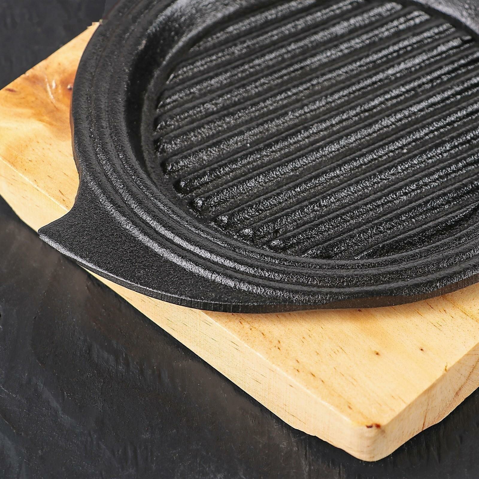 Сковорода чугунная «Круг. Восток Гриль», d=15 см, на деревянной подставке