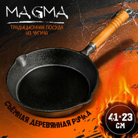 Купить Сковорода чугунная Magma «Эко», 23×3,5 см, с 2 сливами и съёмной деревянной ручкой с доставкой по всей России.