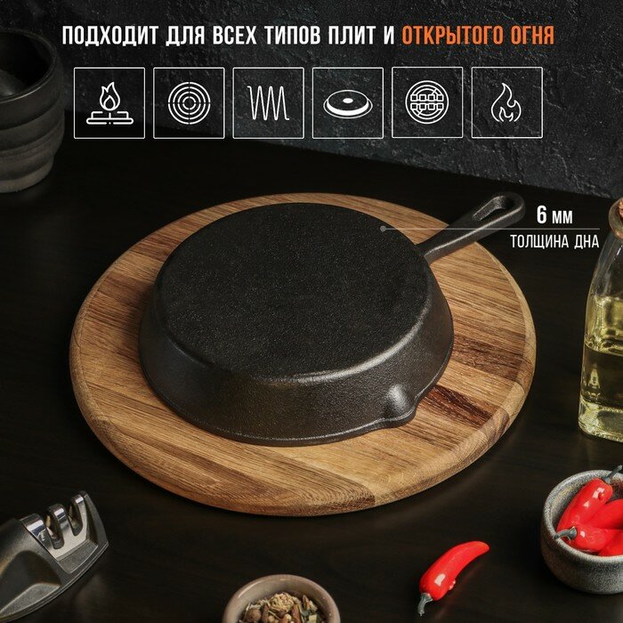 Сковорода чугунная Magma «Вилфред», 19,5×4 см, с 2 сливами и чугунной ручкой, 9243991: сравнение цен, характеристики, фото, актуальное наличие и цены.