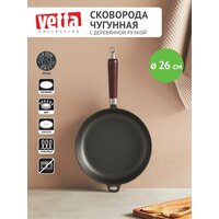 Сковорода чугунная VETTA 26 см, без крышки, деревянная ручка, для индукционной плиты: сравнение цен, характеристики, фото, актуальное наличие и цены.