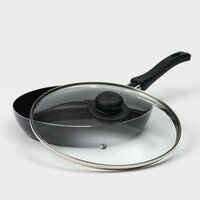Сковорода Consul, d 24 см, стеклянная крышка, пластиковая ручка, антипригарное покрытие, алюминий, чёрная: сравнение цен, характеристики, фото, актуальное наличие и цены.