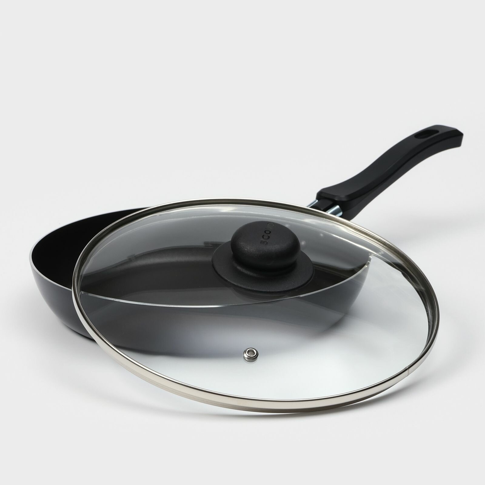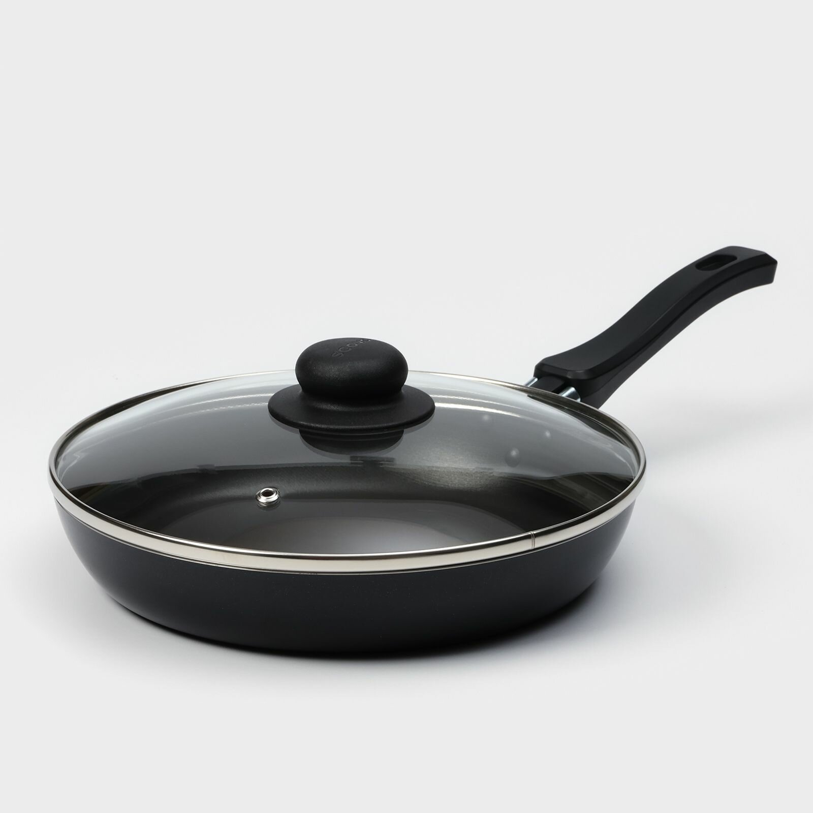 Купить Сковорода Consul, d 24 см, стеклянная крышка, пластиковая ручка, антипригарное покрытие, алюминий, чёрная с доставкой по всей России.