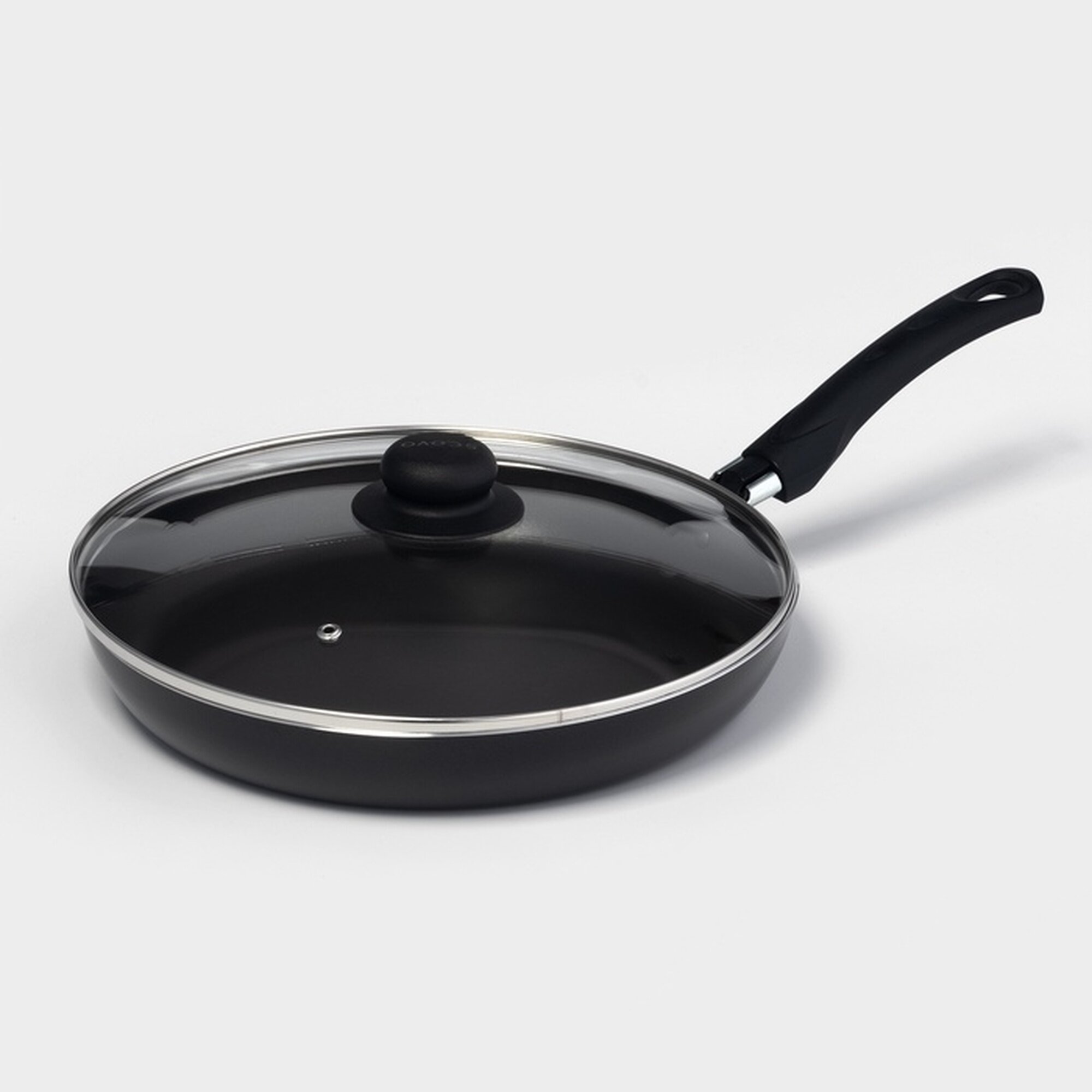 Купить Сковорода Consul, d=28 см, пластиковая крышка, стеклянная крышка, антипригарное покрытие, цвет чёрный с доставкой по всей России.