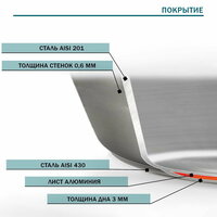 Сковорода d=26 см, h=5 см, толщина стенки 0.6 мм, длина ручки 25 см, индукция, нержавеющая сталь: сравнение цен, характеристики, фото, актуальное наличие и цены.
