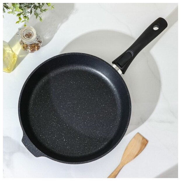 Сковорода, d=28 см, съёмная ручка, антипригарное покрытие, тёмный мрамор