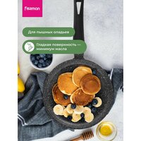 Диаметр дна сковороды составляет 17,5 см, а ширина – 22,0 см. Это позволяет использовать сковороду для приготовления различных видов блинов, от тонких и ажурных до пышных и сытных.