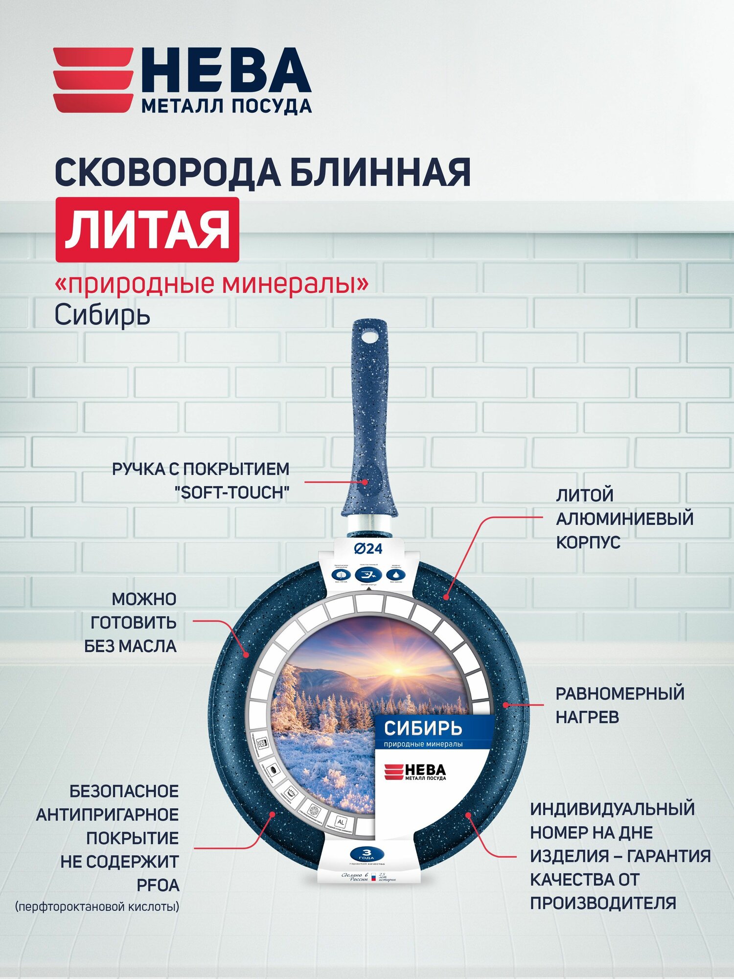 Сковорода для блинов 24 литая с антипригарным покрытием Нева Металл Посуда Природные минералы «Сибирь» с фиксированной ручкой и без крышки: сравнение цен, характеристики, фото, актуальное наличие и цены.