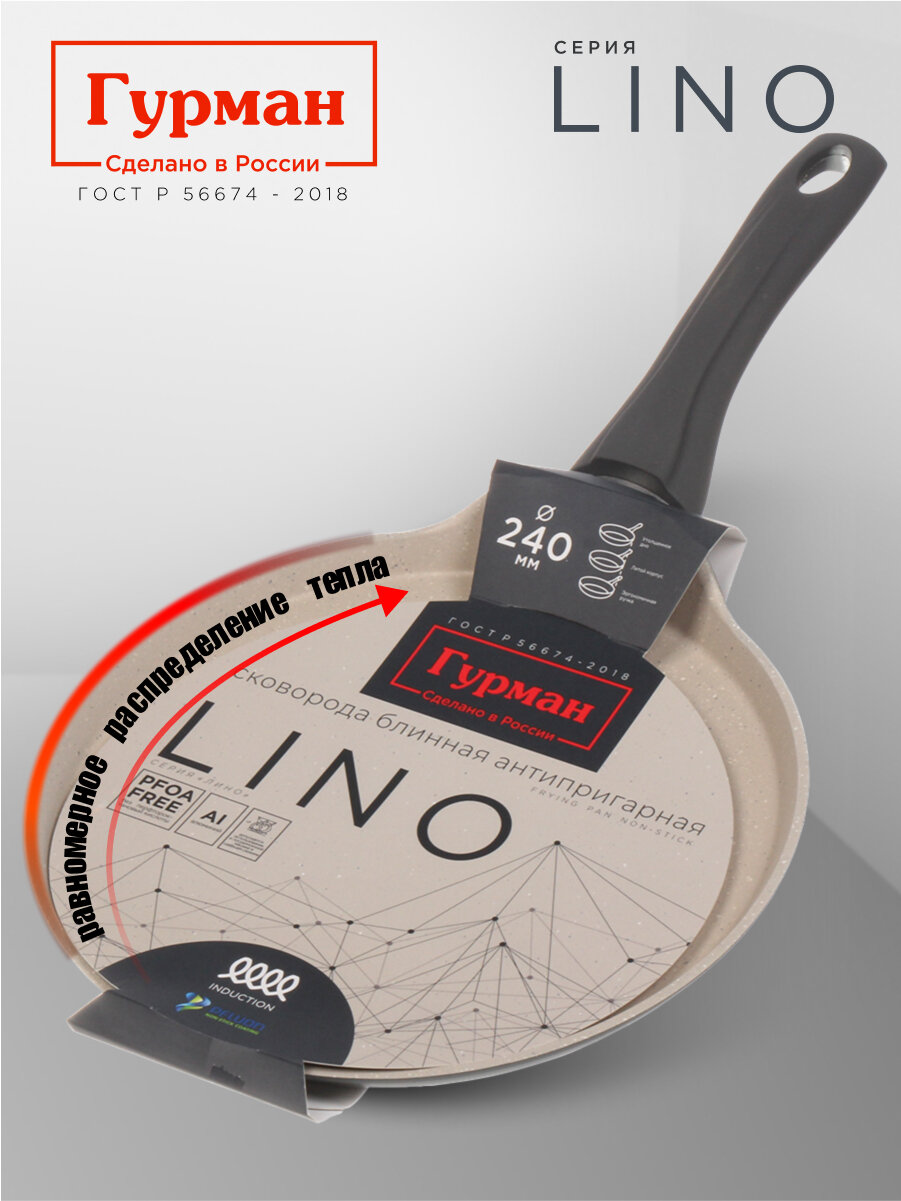 Купить Сковорода для блинов 24 см с антипригарным покрытием, индукция, Гурман Lino с доставкой по всей России. Сковорода для блинов 24 см с антипригарным покрытием, индукция, Гурман Lino: сравнение цен, характеристики, фото, актуальное наличие и цены.