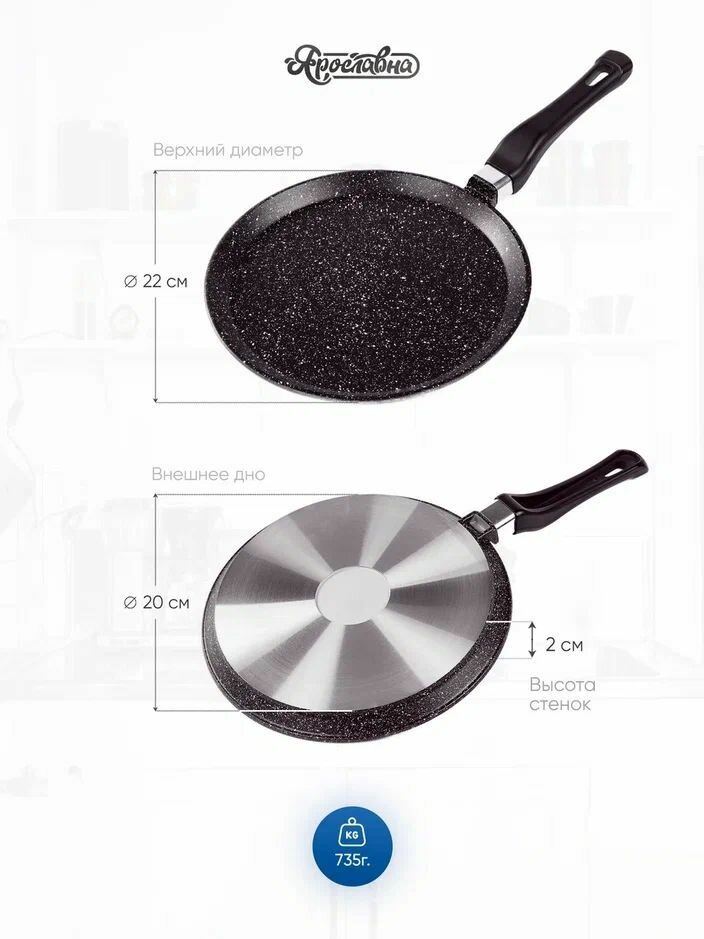 Сковорода для блинов, Ярославна, 22 см, Черная: сравнение цен, характеристики, фото, актуальное наличие и цены.