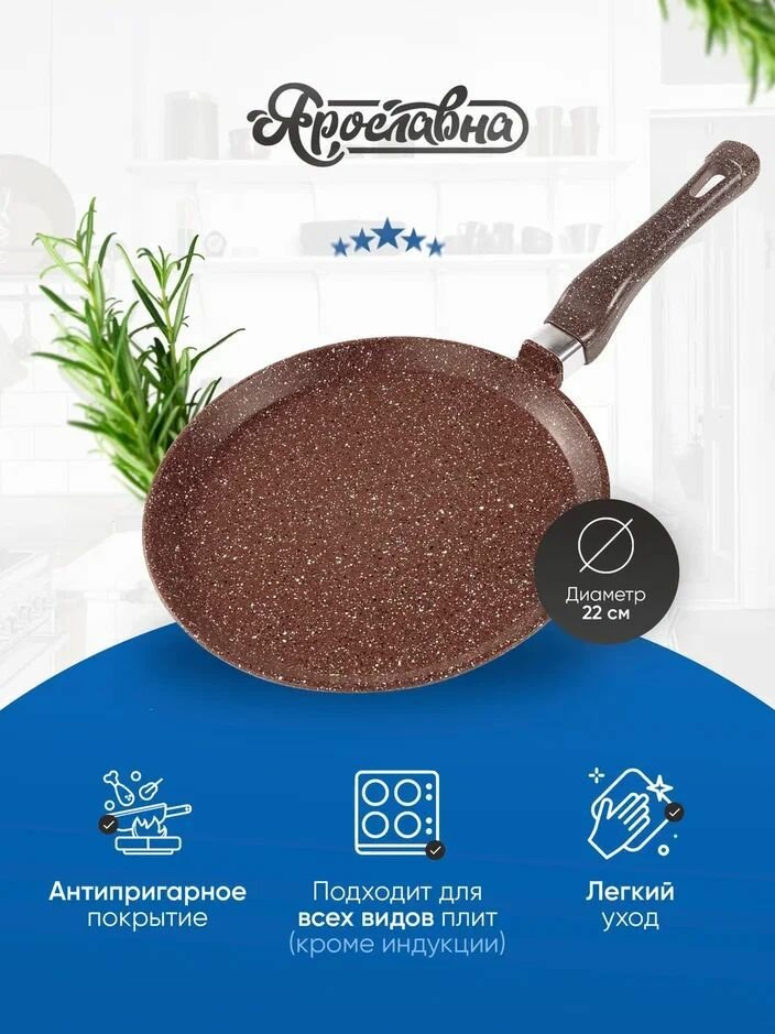 Сковорода для блинов, Ярославна, 22 см, Коричневая: сравнение цен, характеристики, фото, актуальное наличие и цены.