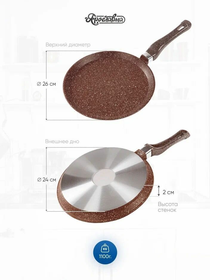 Сковорода для блинов, Ярославна, 26 см, Коричневая: сравнение цен, характеристики, фото, актуальное наличие и цены.