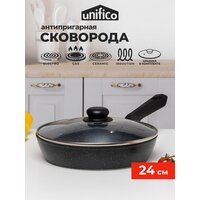 Сковорода для индукционной плиты 24 см с крышкой Unifico Marmo nero (Широкое дно, антипригарное покрытие): сравнение цен, характеристики, фото, актуальное наличие и цены.