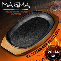 Купить Сковорода для индукционной плиты Magma «Овал» чугунная, на деревянной подставке с доставкой по всей России.