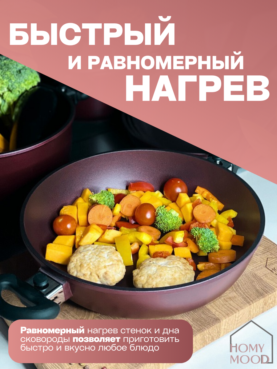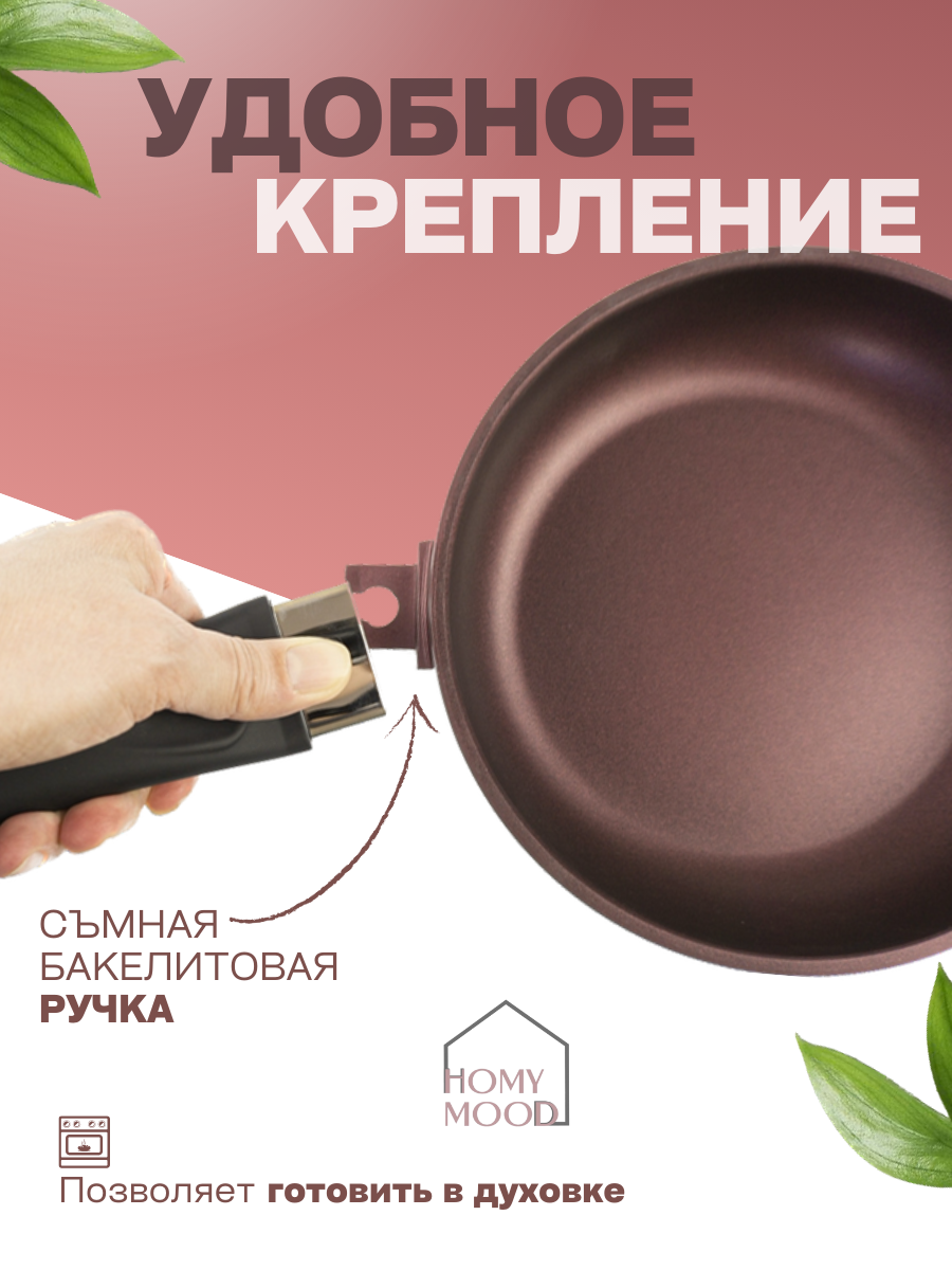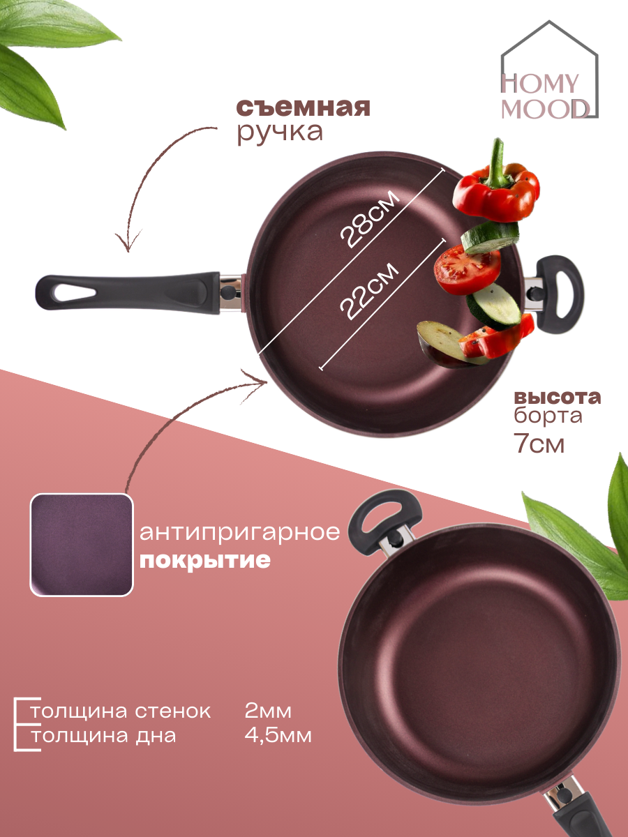 Сковорода для индукционных плит со съемной ручкой Homy Mood 28 см, антипригарное покрытие, красная: сравнение цен, характеристики, фото, актуальное наличие и цены.