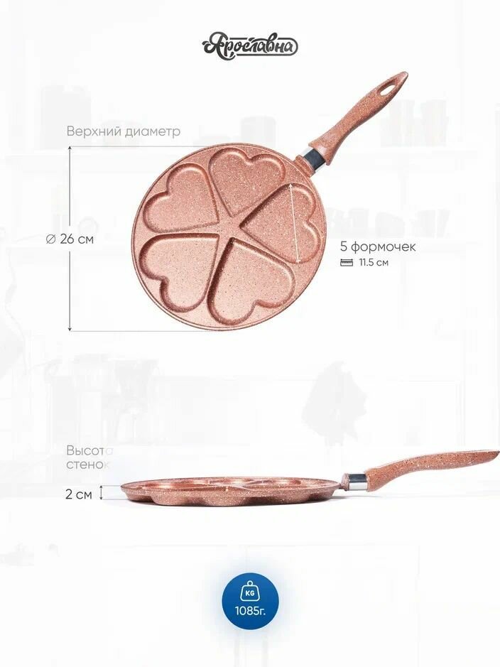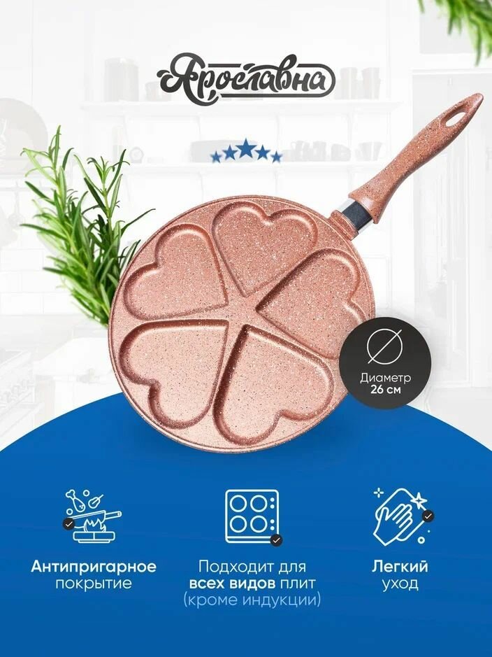Купить Сковорода для оладий «Сердечки», Ярославна, 26 см, Бронза с доставкой по всей России. Сковорода для оладий «Сердечки», Ярославна, 26 см, Бронза: сравнение цен, характеристики, фото, актуальное наличие и цены.