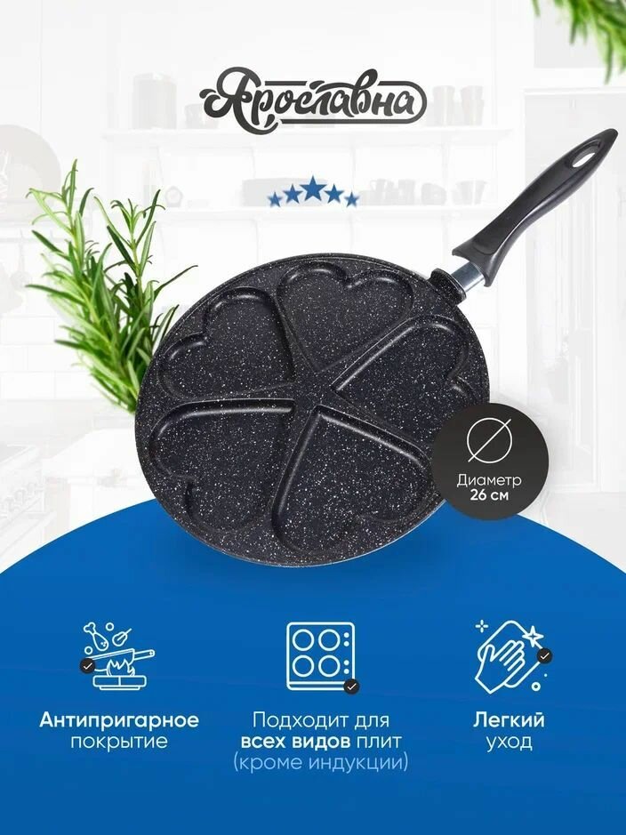 Купить Сковорода для оладий «Сердечки» Ярославна, 26 см, Черная с доставкой по всей России. Сковорода для оладий «Сердечки» Ярославна, 26 см, Черная: сравнение цен, характеристики, фото, актуальное наличие и цены.
