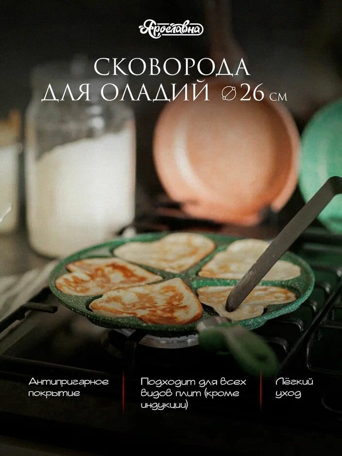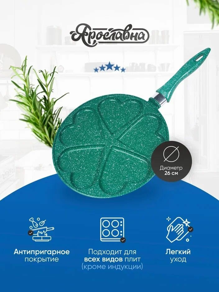 Купить Сковорода для оладий «Сердечки», Ярославна, 26 см, Изумруд с доставкой по всей России. Сковорода для оладий «Сердечки», Ярославна, 26 см, Изумруд: сравнение цен, характеристики, фото, актуальное наличие и цены.