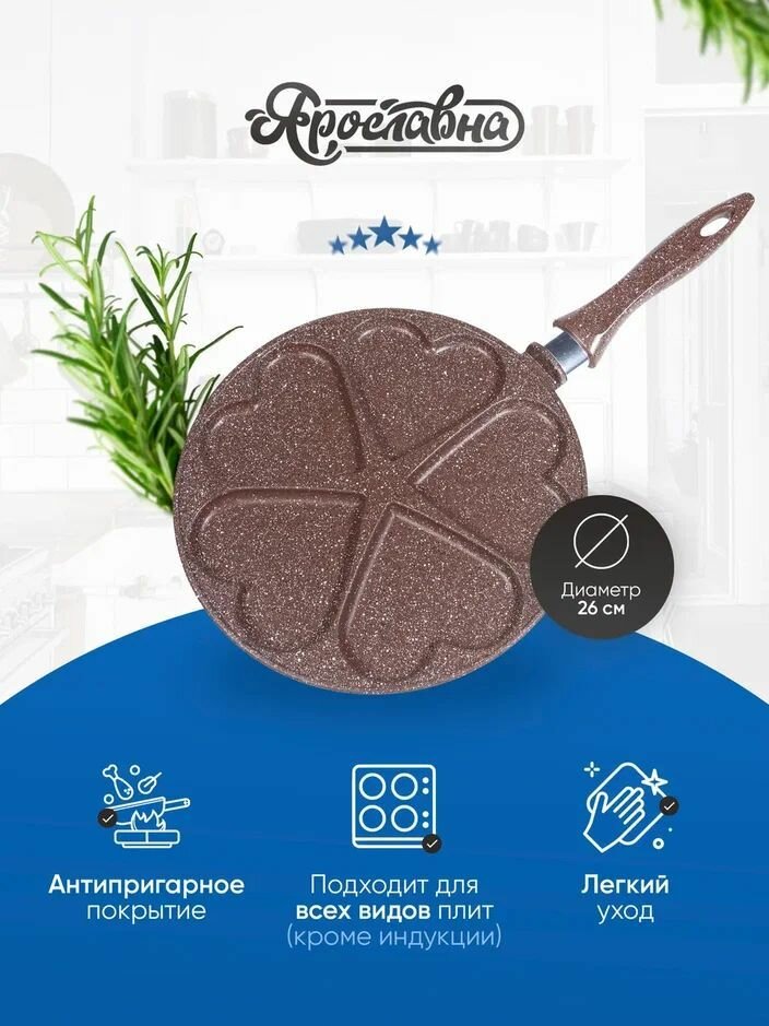 Купить Сковорода для оладий «Сердечки», Ярославна, 26 см, Коричневая с доставкой по всей России. Сковорода для оладий «Сердечки», Ярославна, 26 см, Коричневая: сравнение цен, характеристики, фото, актуальное наличие и цены.