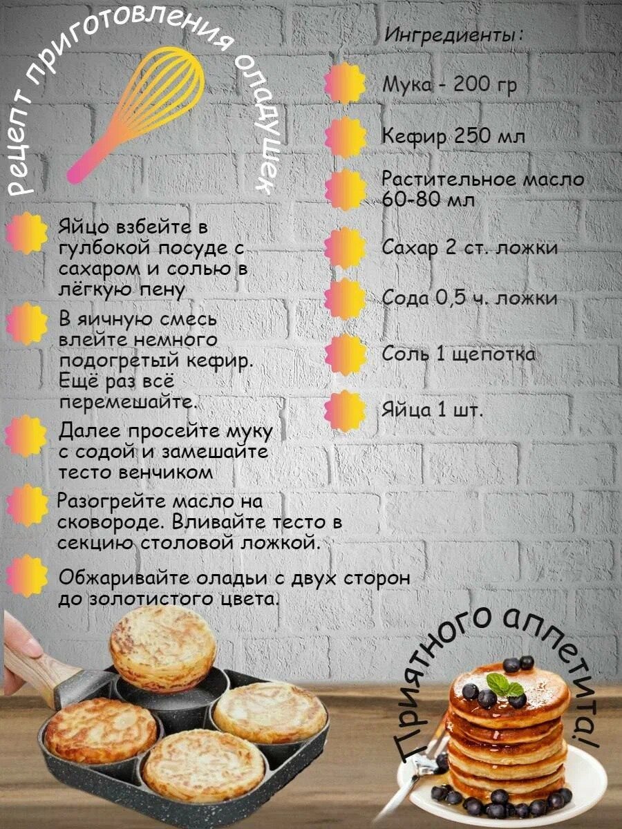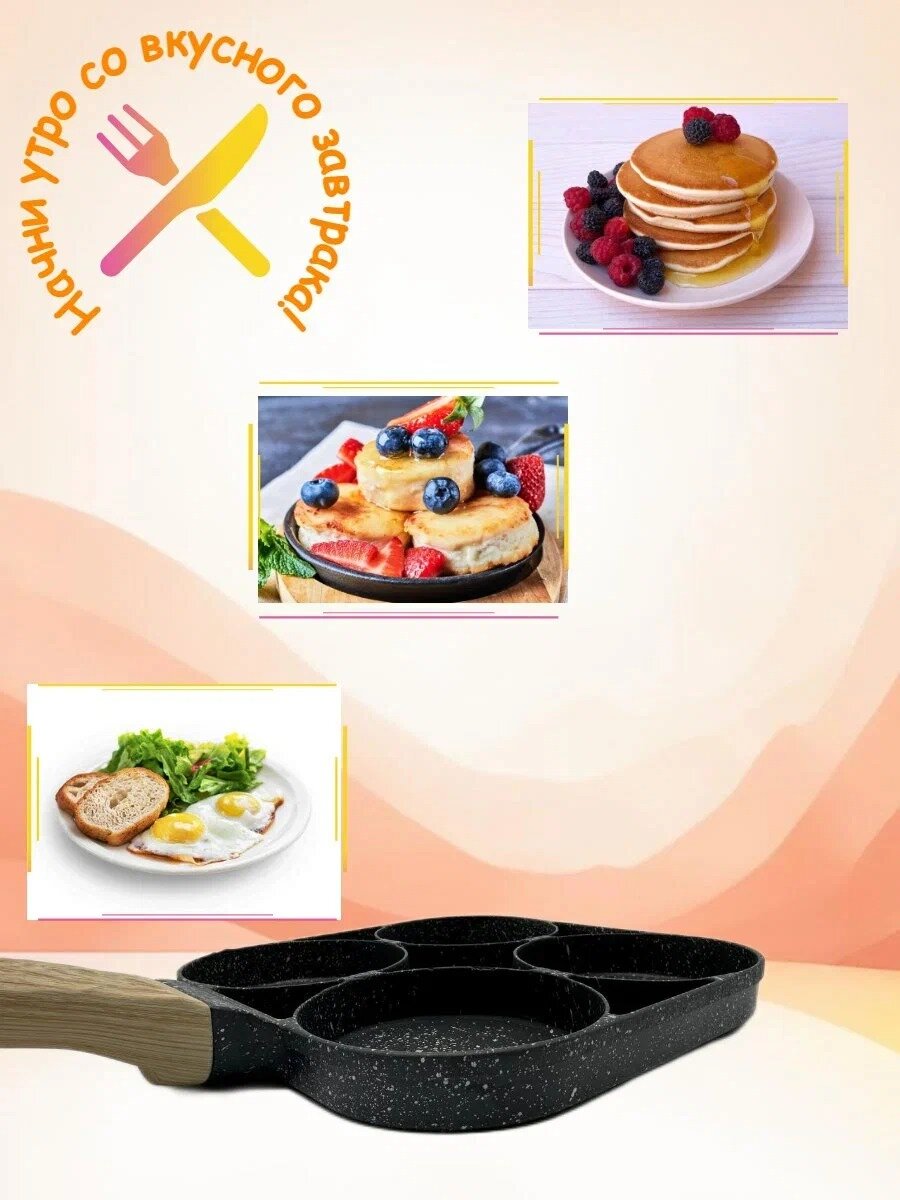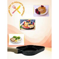 Сковорода с четырьмя отверстиями специально разработана для быстрого приготовления омлета, яичницы, блинов и других блюд.