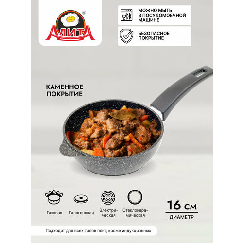 Сковорода мечта - это сковорода от Алиты! И немаловажное качество - сковородка с антипригарным покрытием 16 см еще и отличный подарок жене, маме, сестре, бабушке или подарок для коллеги или подруги, который наполнит кухню и дом уютом! Красивая и функциональная кухонная утварь служит прекрасным подарком на день рождения, юбилей, на Новый год, на свадьбу, на 8 марта, на новоселье и просто порадовать без повода.