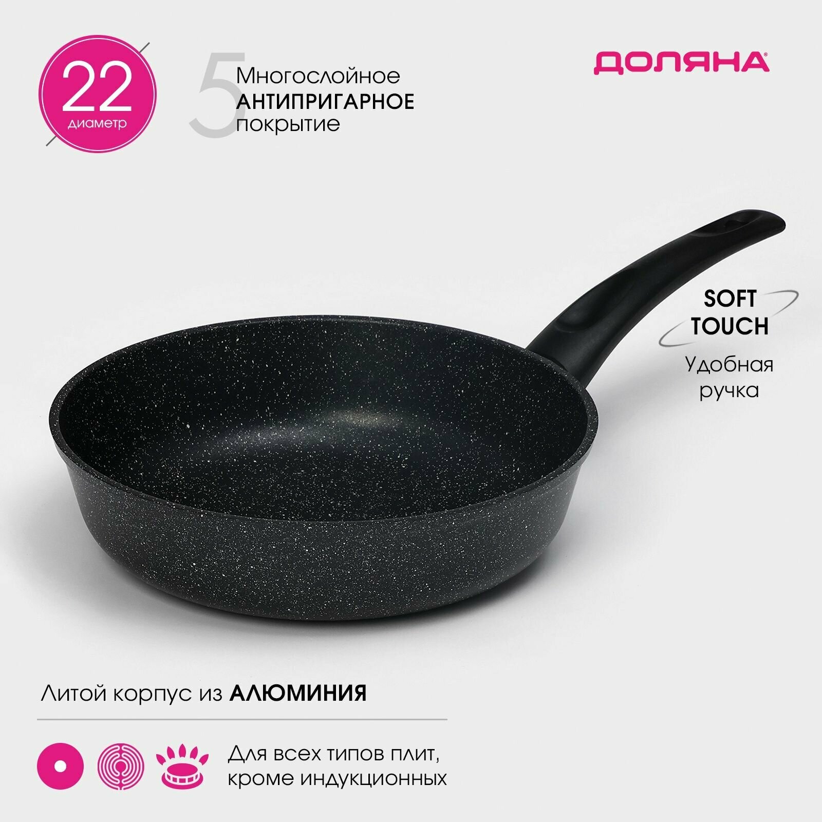 Сковорода Доляна «Элит», d-22 см, антипригарное покрытие, пластиковая ручка, цвет черный: сравнение цен, характеристики, фото, актуальное наличие и цены.