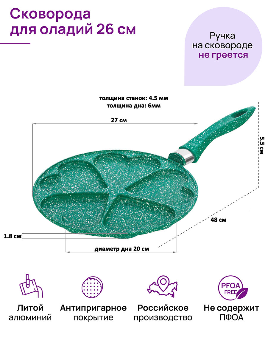 Сковорода для оладий 26 см Elan Gallery гармония вкуса Изумруд сердце, несъёмная ручка: сравнение цен, характеристики, фото, актуальное наличие и цены.