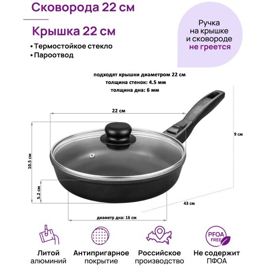 Сковорода Elan Gallery глубокая 22 см гармония вкуса «Черный Оникс» С крышкой, 43*23*10,5 см (120301): сравнение цен, характеристики, фото, актуальное наличие и цены.