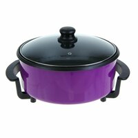 Сковорода Sakura — практичное и функциональное приобретение. Прибор питается от сети, а значит, тепло распределяется равномерно, обеспечивая качественное приготовление пищи. Это устройство не нужно ставить на плиту и можно расположить в любом месте. Антипригарное покрытие предохраняет продукты от прилипания и подгорания. Вы можете самостоятельно регулировать температуру с помощью термостата для достижения идеального результата. Данная модель обладает рядом преимуществ, которые оценит любая хозяйка: элегантный дизайн; лёгкость в эксплуатации; удобство хранения и транспортировки; крышка из закалённого стекла для контроля процесса приготовления. Характеристики Мощность: 1500 Вт. Диаметр: 32 см. Глубина: 9 см. Тип управления: механический. Регулируемый термостат. Максимальная температура: 240 ˚С. Материал корпуса: алюминий. Толщина корпуса: 1,3 мм. Покрытие корпуса: антипригарное. Материал крышки: закалённое стекло. Кабель питания: съёмный, прорезиненный, 1 м. Цвет: фиолетовый. Гарантия: 12 месяцев. Радуйте вкусными блюдами себя и своих близких вместе с электросковородой Sakura!