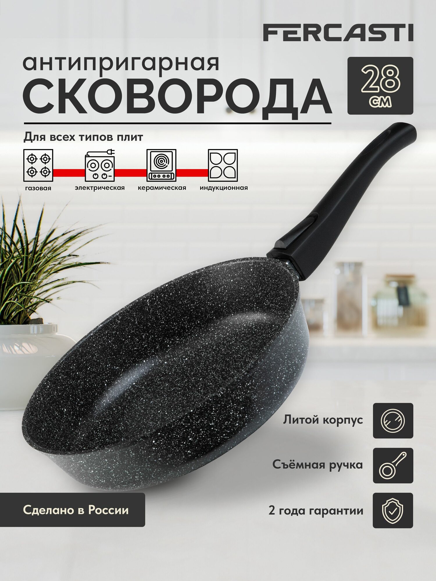 Сковорода FERCASTI 28 см литая, антипригарная, со съемной ручкой, для всех типов плит, черная: сравнение цен, характеристики, фото, актуальное наличие и цены.