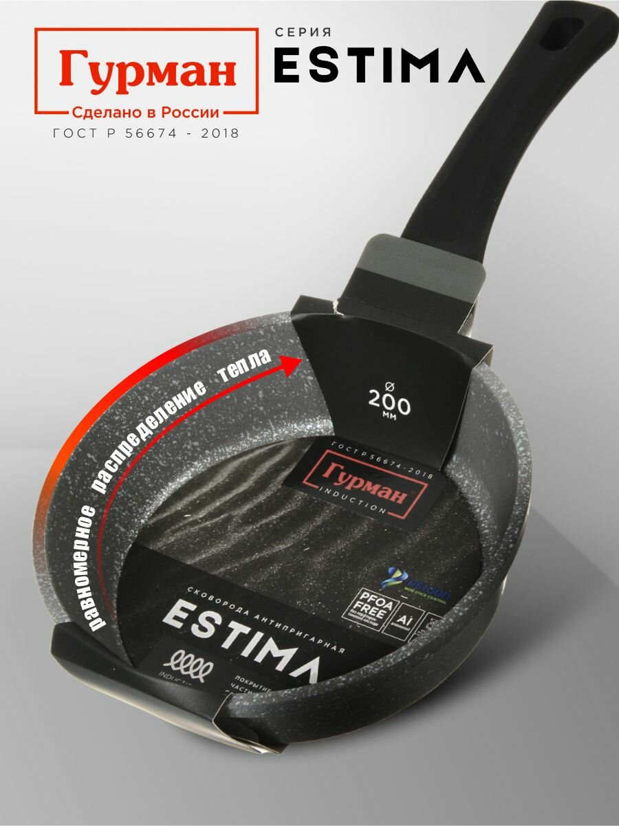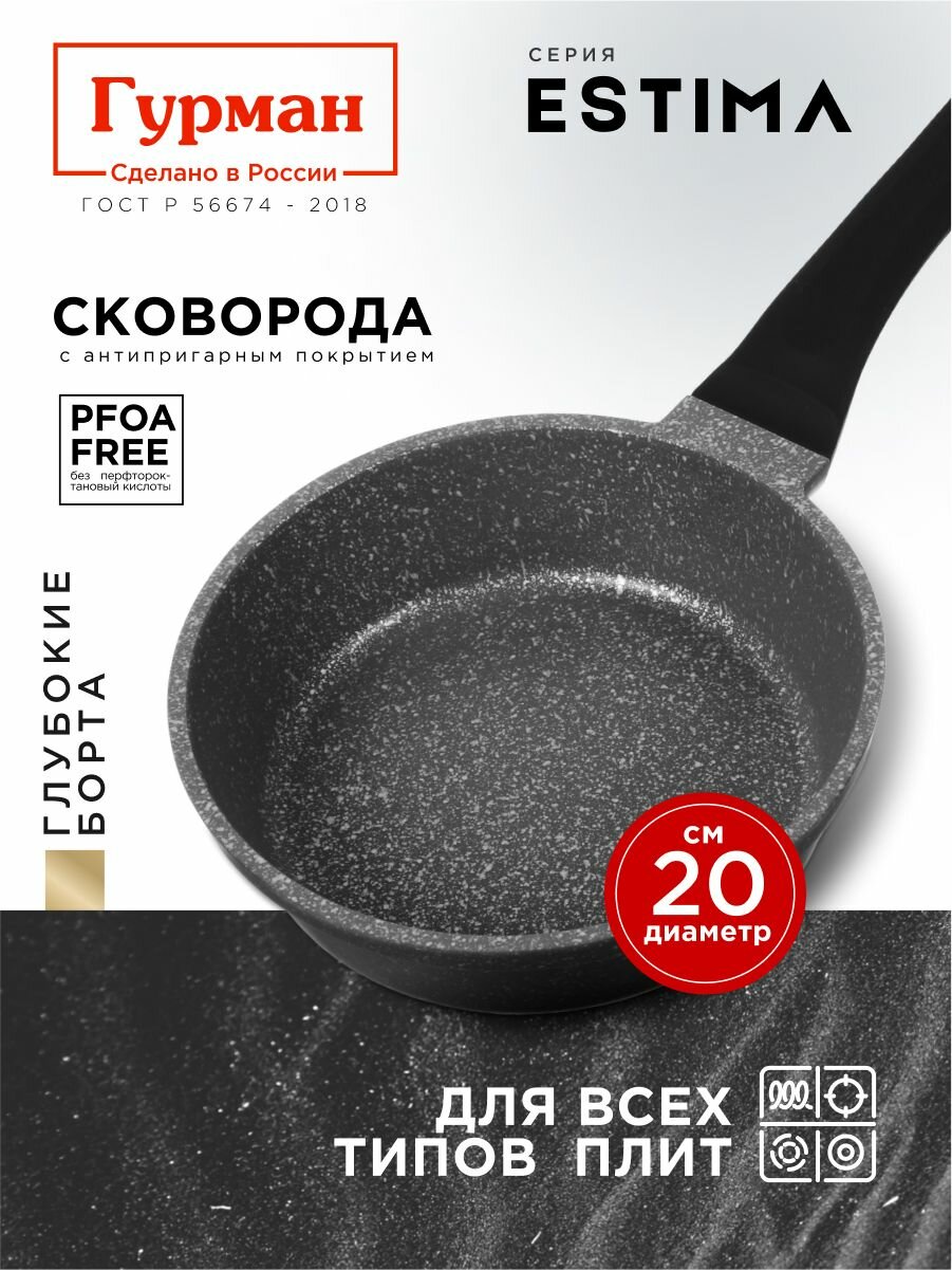 Сковорода глубокая 20 см с антипригарным покрытием, индукция, Гурман Estima: сравнение цен, характеристики, фото, актуальное наличие и цены.