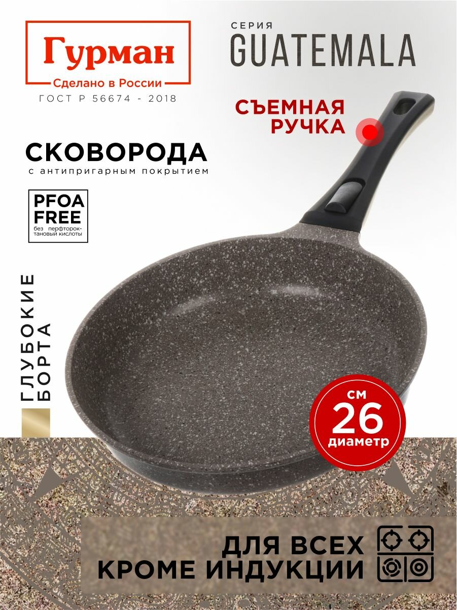 Сковорода глубокая 26 см с антипригарным покрытием, Гурман Guatemala: сравнение цен, характеристики, фото, актуальное наличие и цены.