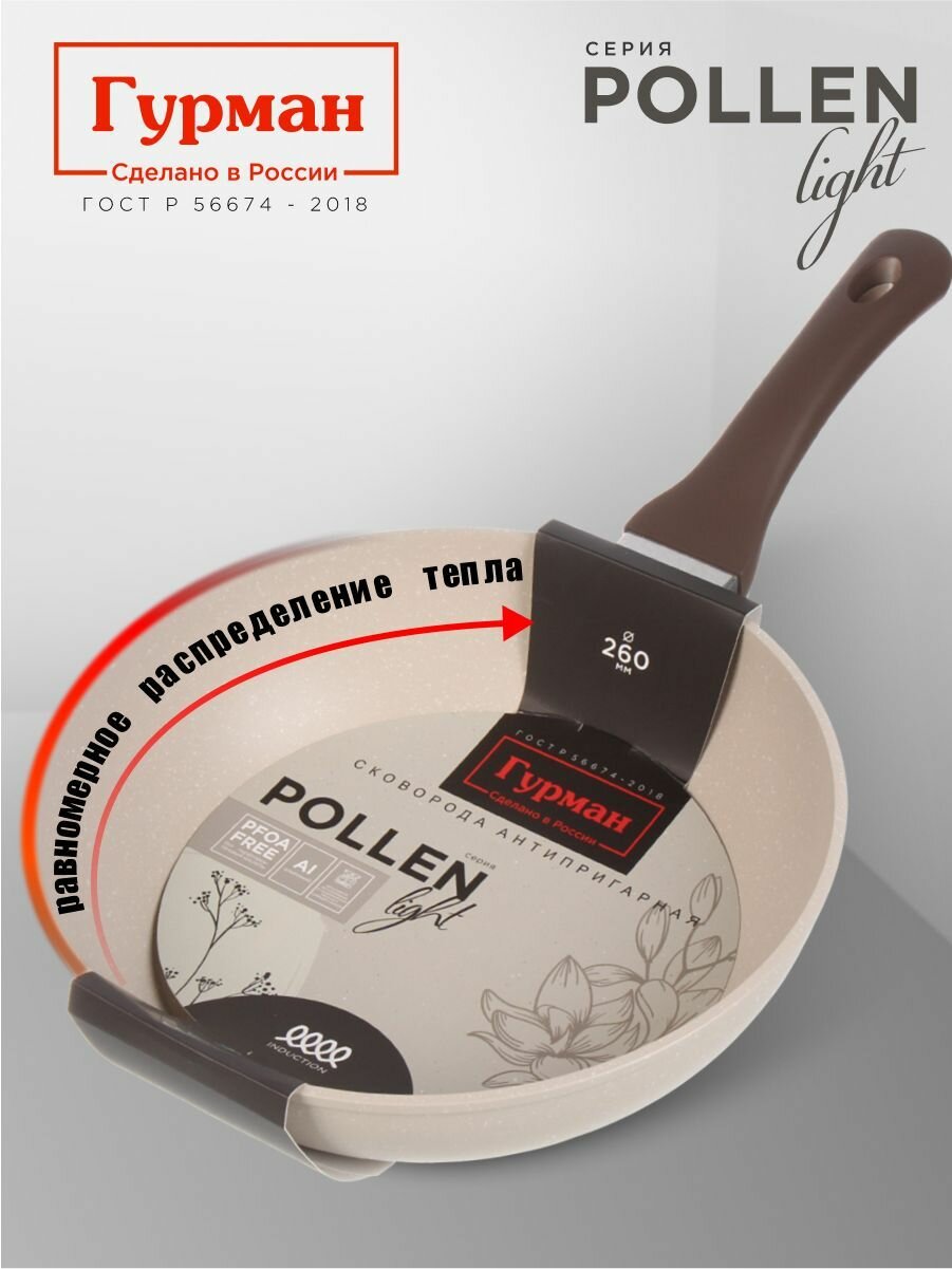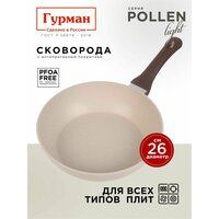 Сковорода глубокая 26 см с антипригарным покрытием, индукция, Гурман Pollen light: сравнение цен, характеристики, фото, актуальное наличие и цены.
