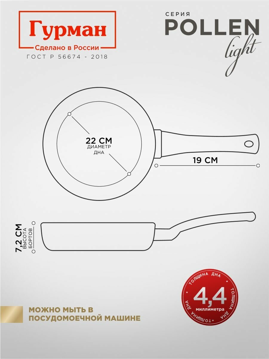 Сковорода глубокая 28 см с антипригарным покрытием, индукция, Гурман Pollen light: сравнение цен, характеристики, фото, актуальное наличие и цены.
