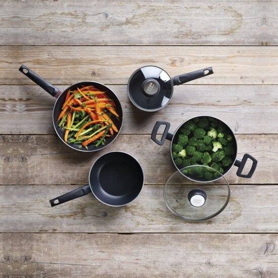 материал крышки: стекло; материал ручки: бакелит; марка антипригарного покрытия Bekadur Essential