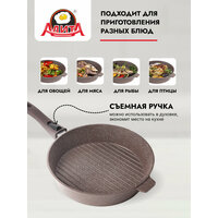 Купить Сковорода гриль 28 см со съемной ручкой антипригарная алюминиевая литая с покрытием, Браун с доставкой по всей России.