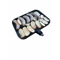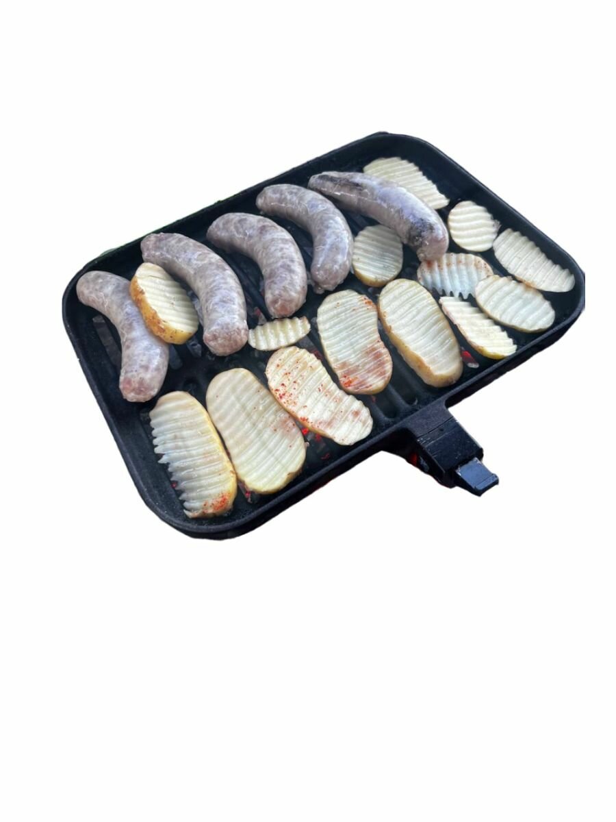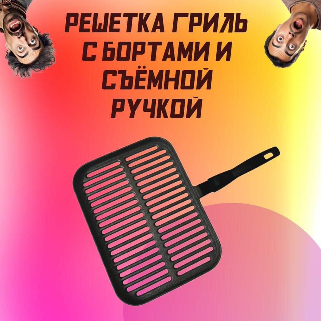 Сковорода гриль чугунная выполнена из экологически чистого и безопасного металла - чугуна и предназначена для приготовления блюд барбекю. Имеет съемную бакелитовую ручку. С этой ручкой очень удобно готовить, Вам не приходится снимать или переворачивать продукты в специальных перчатках для решеток гриль. Высокие борта как у сковородок, очень удобны - продукты, мясо, рыба или овощи останутся в решетке. Габаритные размеры: Высота бортов 20мм Масса - 4 кг. У решетки гриль между прутьями расстояние 9мм, теперь ваш лук точно не убежит в мангал и не сгорит на углях. Чугунные изделия обладают естественными антипригарными свойствами. За счет низкой теплопроводности и высокой теплоемкости изделие равномерно прогревается по всей поверхности и долго сохраняет тепло. Компактный вечный мангал - это отличный подарок для мужчины, хорошего друга, папы или дедушки. Желаем прекрасного отдыха и вкусного шашлыка! Такой мангал может быть вариантом для дачи или кемпинга, где его можно легко собрать вместе и быстро использовать для приготовления пищи на открытом воздухе. Занимает мало места в машине, Вы можете в любой момент его собрать и приготовить любимые блюда на природе в кругу семьи и друзей. Мангал сборный идеален для приготовления множества блюд на углях: шашлыка, люля-кебаб, мясо на гриле, овощи на гриле, рыба и многое другое.