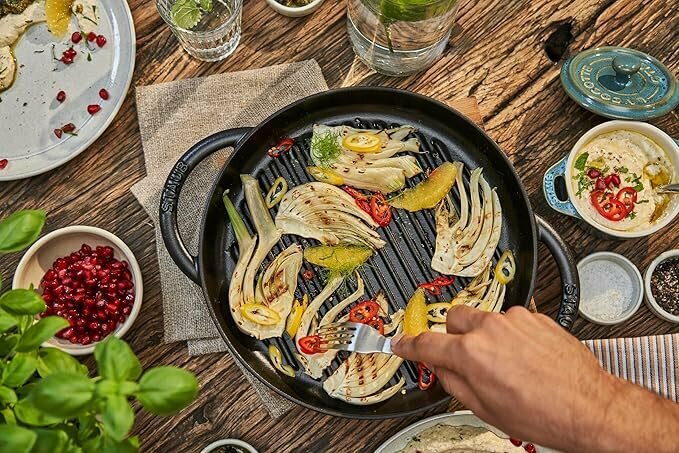 Сковорода-гриль чугунная STAUB с двумя ручками, диаметр 26 см, цвет черный, 40509-377-0: сравнение цен, характеристики, фото, актуальное наличие и цены.