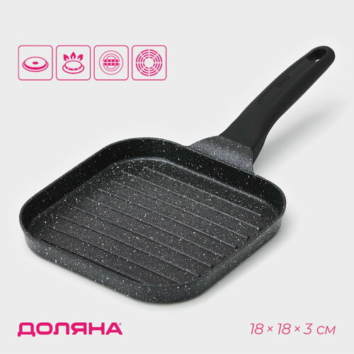 Артикул: 2164-835. Размеры: 3 x 18 x 18 см, Материал: Литой алюминий, Диаметр: 18 см, Вес: 564 гр, Тип плиты: Для газовой плиты, Размер упаковки: 3.5 x 22.5 x 22.5 см, Съёмная ручка: Нет, Крышка: Нет, Диаметр дна, см: 18, Высота стенки, см: 3, Цвет: Чёрный, Тип покрытия: Антипригарное, Толщина дна, мм: 2.8, Толщина стенки, мм: 2.8, Можно мыть в посудомоечной машине: Да, Вид сковороды: Сковорода-гриль, Набор: Нет, Рисунок: Нет, Форма: Квадрат, Капсульное дно: Нет. Сковорода-гриль из высококачественного литого алюминия с инновационным антипригарным покрытием. Этот кухонный аксессуар станет незаменимым помощником в приготовлении разнообразных блюд и поможет вам удивить гостей своими кулинарными навыками. Преимущества товара: Высококачественный литой алюминий: обеспечивает прочность, долговечность и быстрый нагрев. Инновационное антипригарное покрытие: предотвращает пригорание, сохраняет полезные свойства продуктов и облегчает уход за сковородой. Подходит для разных видов продуктов: позволяет готовить мясо, рыбу, овощи и другие блюда с эффектом гриля. Ребристая поверхность: создает аппетитные полосы на продуктах и добавляет новые возможности для кулинарного творчества.