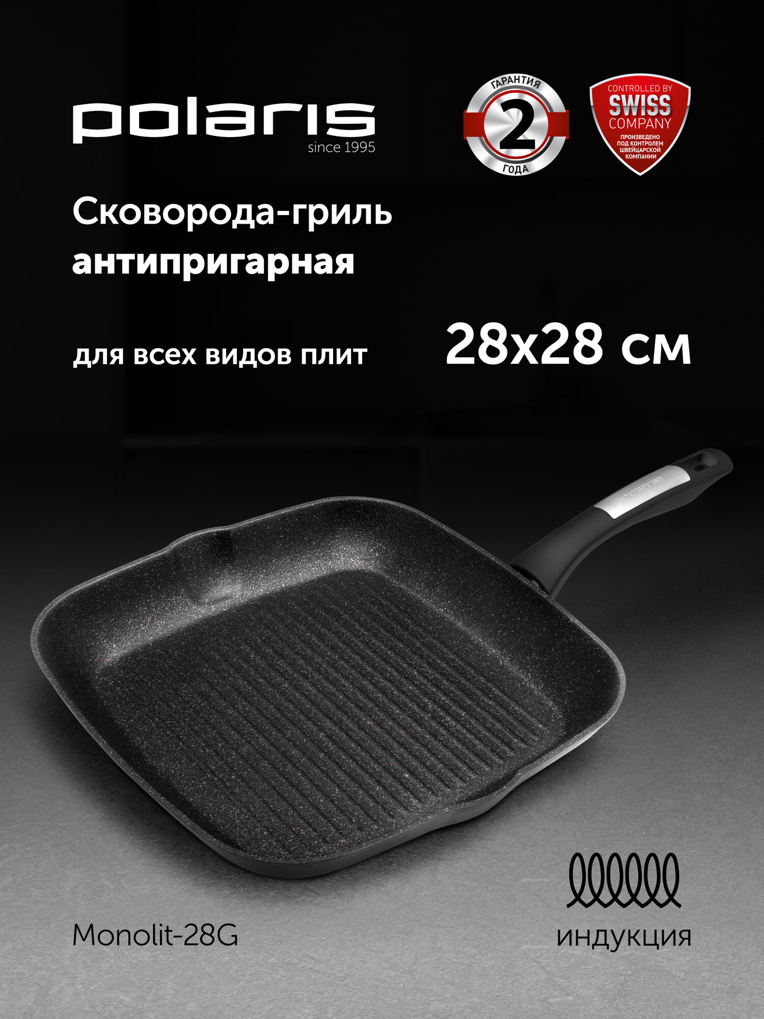 Сковорода-гриль 28 см Polaris Monolit-28G, с антипригарным покрытием, подходит для индукционной плиты: сравнение цен, характеристики, фото, актуальное наличие и цены.
