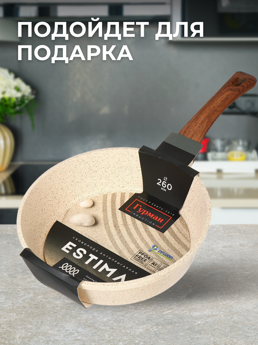 Купить Сковорода Гурман Estima 26см антипригарное покрытие индукция бежевая с доставкой по всей России. Сковорода Гурман Estima 26см антипригарное покрытие индукция бежевая: сравнение цен, характеристики, фото, актуальное наличие и цены.