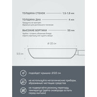 Купить Сковорода индукционная 22 см антипригарная с индикатором нагрева с доставкой по всей России.