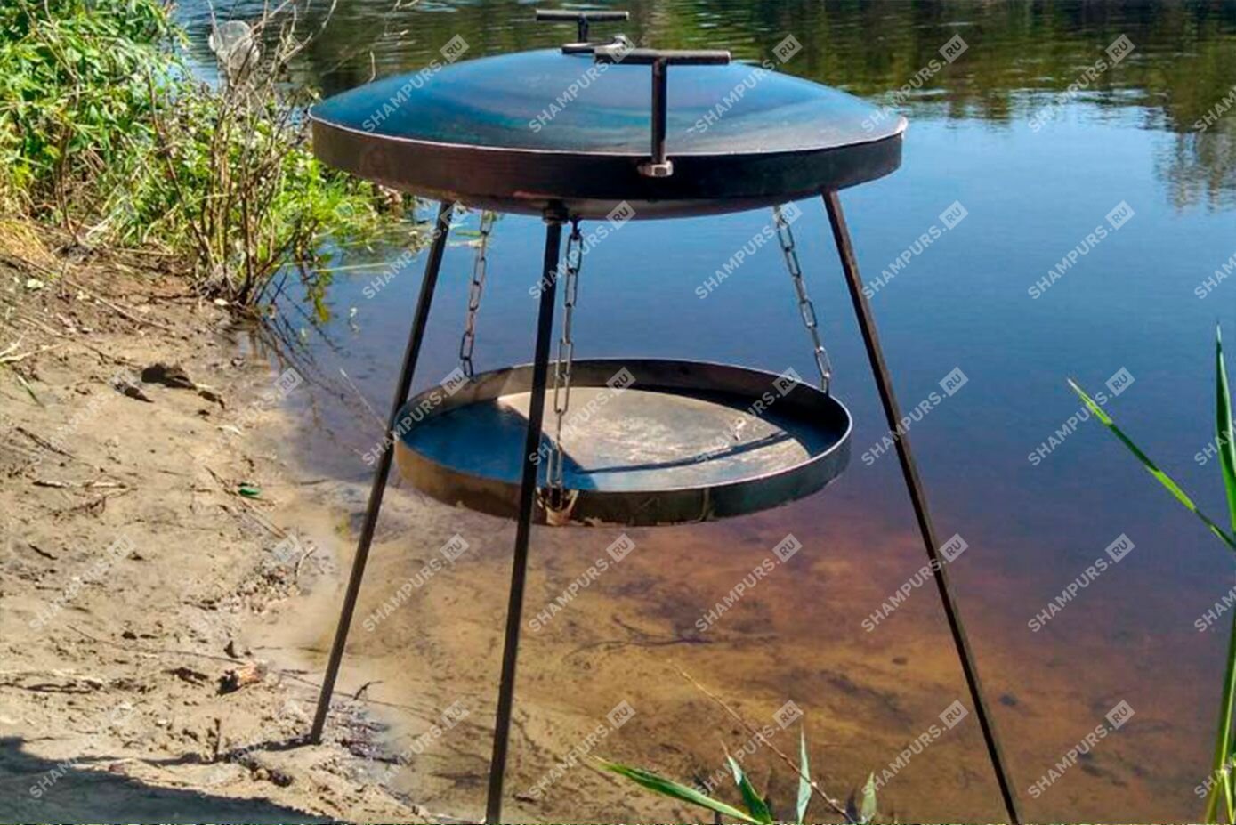 Купить Сковорода из диска бороны 57 см с крышкой и подвесом для разведения огня с доставкой по всей России. Сковорода из диска бороны 57 см с крышкой и подвесом для разведения огня: сравнение цен, характеристики, фото, актуальное наличие и цены.
